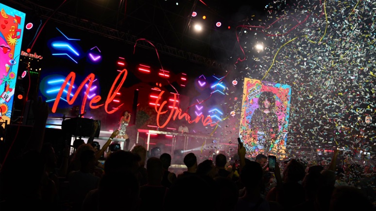 El escenario del Yumbo vibró el sábado con la gala ‘«Saturday Pride Live Show!», presentada por Rubén Dizá y Jia Miles, ofreció las actuaciones de Glitter Girls, Kimy Touw y la cantante canaria Mel Ömana, que puso a bailar al público.