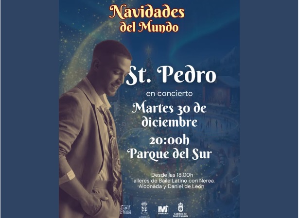 Esta tarde, a las 20,00 horas, dentro de la programación extraordinaria prevista por el Ayuntamiento de San Bartolomé de Tirajana, dentro de «Navidades del Mundo«, actuará el cantante tinerfeño ST Pedro, que se inició dentro de la panorámica musical del mundo del rock y del underground canario se dio a conocer en el programa «La Voz«.