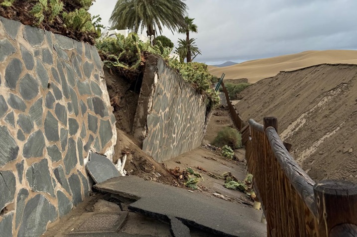 Los incidentes más aparatosos fueron la caída de un muro que afectó a tres vehículos aparcados en las inmediaciones del Hotel Atlantic Beach; las caídas de un árbol y de una palmera respectivamente en la Avenida de Gáldar y Avenida de Tirajana; dos accidentes de tráfico, sin heridos, en la rotonda de la Piscina Municipal de San Fernando y a la altura del kilómetro 43,700 de la autopista GC-1; desprendimientos leves en una fachada doméstica de El Tablero; una obstrucción de la canalización de alcantarillado a la altura de los Apartamentos Los Molinos; desprendimientos de tierra y piedras que afectaron a las carreteras de La Montaña, Taidía y Artedara; cortes de luz en el alumbrado público de las avenidas turísticas de Tirajana, Gran Canaria, Tenerife, Italia y Francia, y varias inundaciones de escasa entidad en los ámbitos del viejo Canódromo, el túnel frente a El Veril Playa, donde se prestó ayuda a una señora, y en dos viviendas particulares del Patronato y la Avenida de Alemania. La lluvia también obligó a circular con precaución en varias calles de la zona turística.