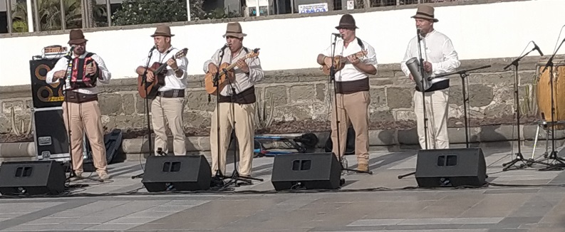 Actuación de la Parranda «La Polvareja», ayer, en la Feria de Artesanía en Maspalomas