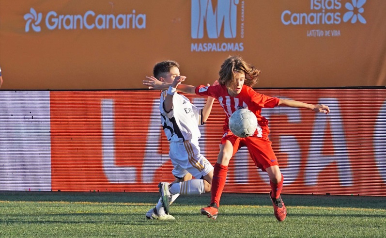 Final de infarto con lleno absoluto en las gradas de la Ciudad Deportiva de Maspalomas, cielos despejados y el mejor ambiente para disfrutar de los dos mejores equipos del torneo que se jugaban el título de campeón del XXVII Torneo Internacional LALIGA FC FUTURES en el Campo David García, apasionante derby madrileño entre el Real Madrid y el Atlético de Madrid.
