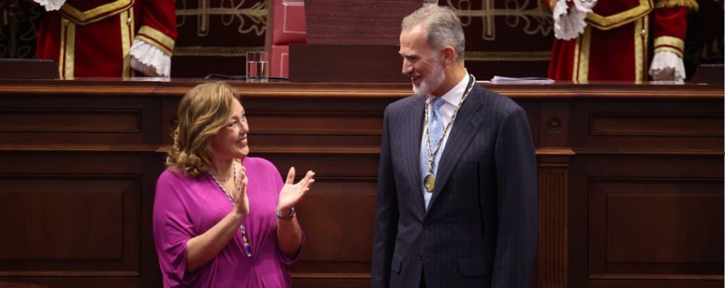 “El afecto y respeto de nuestro pueblo canario hacia la Casa Real nos sirve para reafirmar el sólido compromiso que une a Canarias con la Corona, y que se consolida con este reconocimiento que, además, coincide con la celebración del X aniversario de su proclamación como Rey de España. En este primer decenio de su reinado, Su Majestad ha representado de manera incuestionable la alta responsabilidad que ostenta como Jefe del Estado, dando ejemplo siempre de integridad, honradez y transparencia”, recalcó Astrid Pérez.