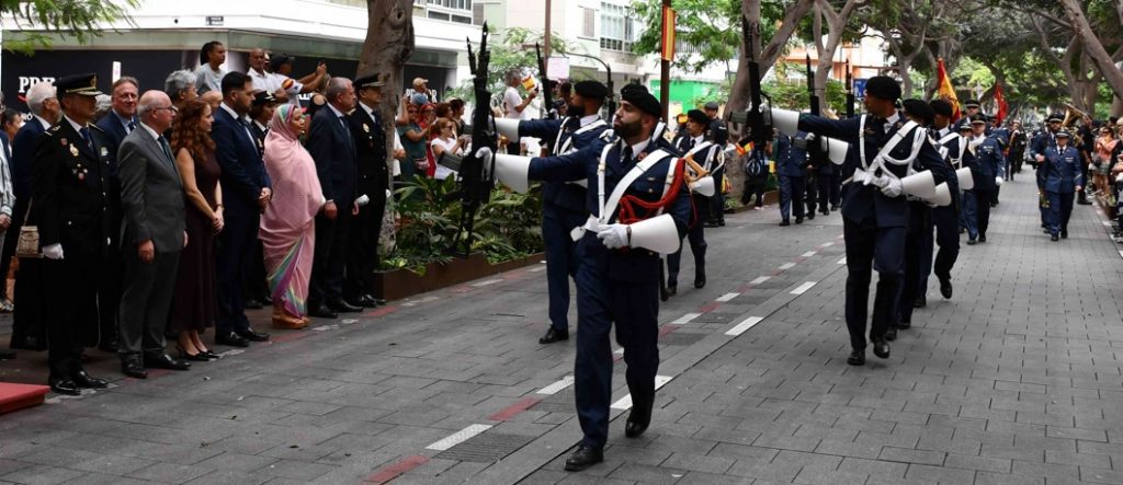 Esta festividad tan importante para todos los españoles, se celebró con un acto militar consistente en un solemne izado de la Bandera Nacional, símbolo de nuestra nación, un homenaje a los caídos y un desfile militar de la fuerza participante, compuesta por personal del Ejército de Tierra, Armada, Ejército del Aire y del Espacio, Guardia Civil, Unidad Militar de Emergencia, la Real Hermandad de Veteranos de las FAS y GC, además de diversas asociaciones de veteranos, que tuvo lugar en la Rambla de la avenida José Mesa y López (zona peatonal).