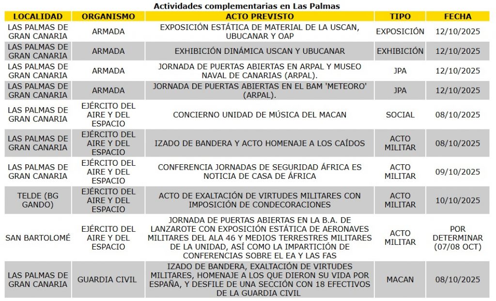 En el siguiente cuadro pueden contemplar el programa de los actos y convocatorias a desarrollar con motivo de la celebración del Día de la Fiesta Nacional de España:
