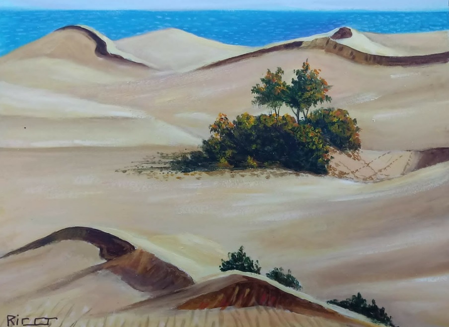 Hoy, pues, vayan estas líneas de recuerdo para un pintor de Maspalomas, como pocos, que, en plenitud de forma creativa, sigue soñando con la densidad de las marinas, de las dunas, de las estampas que observaba en Maspalomas y que, por mor de sus facultades, se convertían, qué curioso, en obras de arte y recuerdos para los visitantes.