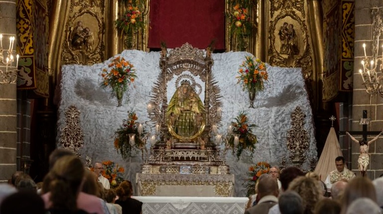 Tras la misa de las 19:00 horas, presidida por el Rvdo. José Domínguez Pérez, adscrito a la parroquia de Santo Domingo de Guzmán de Las Palmas de Gran Canaria, la imagen de la Virgen ascenderá de nuevo a lo alto del altar mayor de la Basílica, donde permanece habitualmente.