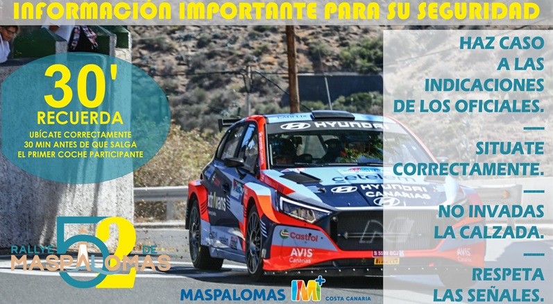 De este modo la Escudería Maspalomas nos cita para un evento de una excelente competitividad deportiva en un rallye que, asimismo, es puntuable para el Trofeo de Canarias de Rallys, penúltima cita del Campeonato BP de Las Palmas, Campeonato de Las Palmas de Regularidad Sport y otros.