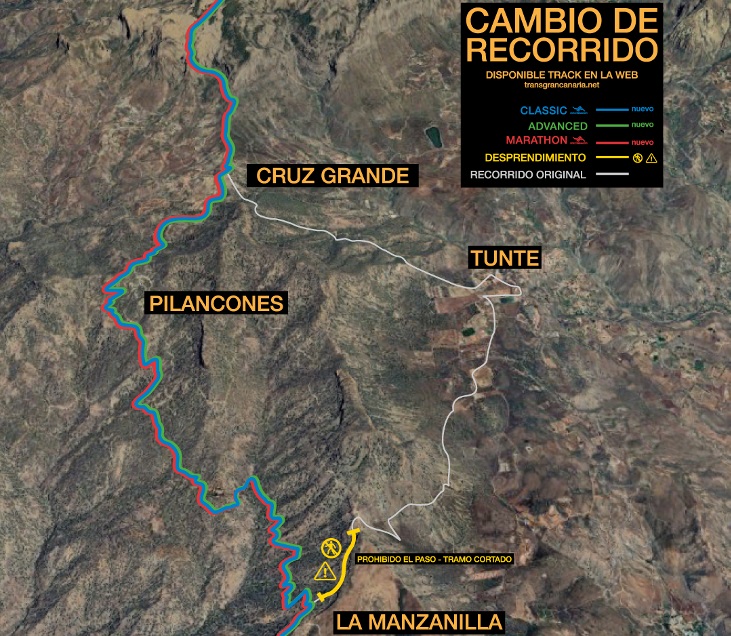 La carrera de montaña The North Face Transgrancanaria modifica el recorrido de las modalidades Classic, Advanced y Marathon, que se celebrarán entre el 6 y el 8 de marzo, debido a los desprendimientos registrados en la zona de La Manzanilla por las intensas lluvias caídas durante las últimas semanas en la isla.