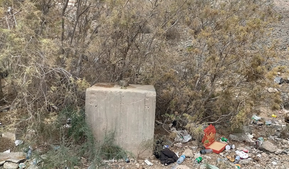 Esa pendiente se encuentra, asimismo, con basuras, botellas, garrafas, cartones, residuos de material de construcción y otros. La mínima falta de una barrera protectora, como medida de seguridad, demuestra y delata otra falta de atención por parte de quien corresponda.