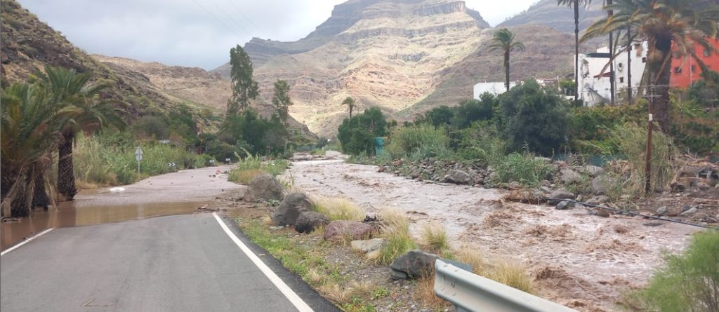 Respecto a la situación de la carretera GC-505, Marco Aurelio Pérez destacó que “varía por horas” debido a que las lluvias intensas y con viento en la zona de cumbre están llegando a la hora o a las dos horas a la cuenca del Barranco de Soria y Arguineguín porque están corriendo todos los barrancos de la zona de Ayacata y Cercados de Araña, señalando que “los niveles del agua sobrepasan los encausamientos y nos encontramos con muchas zonas de la carretera con láminas de agua de hasta 20 centímetros corriendo con mucha fuerza, provocando incluso que los coches de los servicios de emergencia no puedan pasar”.