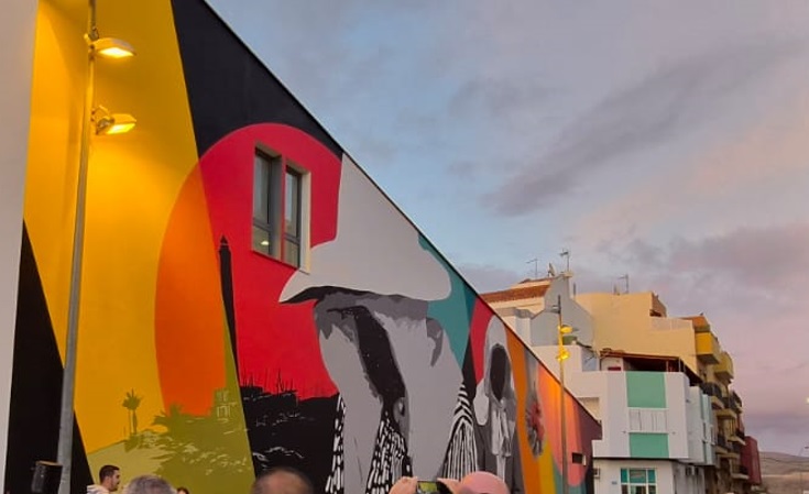 Los dos artistas, Tono Cruz y Felo Monzón, agradecieron la participación popular en el acto inaugural y la acogida y el trato amable que recibieron durante el tiempo de trabajo que emplearon en la confección del mural, pintado con pintura plástica de exterior.