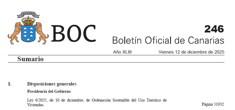 Aprobada en el pleno celebrado en el Parlamento de Canarias el pasado día 12 de noviembre de 2025, por un total de 38 votos a favor y de 32 votos en contra, que apareció publicada en el Boletín Oficial de Canarias el 12 de diciembre de 2025, que entraba en vigor el día siguiente, 13 de diciembre de 2.025, la Ley, tras su más que muy polémica y muy enrevesada normativa, señala, como todas, un último apartado que, según se puede leer en la misma, dicta lo siguiente: «Por lo tanto, ordeno a la ciudadanía y a las autoridades que la cumplan y la hagan cumplir«. Debajo: El presidente Fernando Clavijo Batlle.