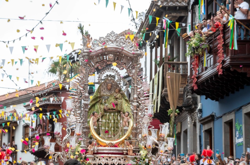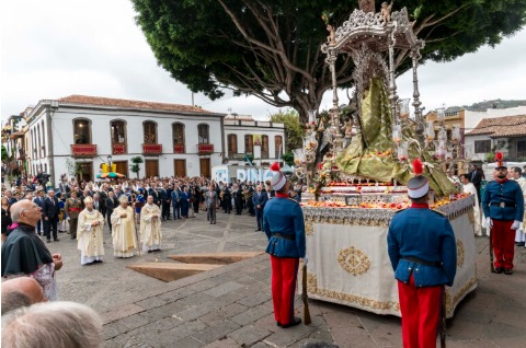 La procesión, con la imagen de la Virgen del Pino, de tanta devoción, solemnidad y participación, se llevó a cabo por el centro del municipio de Teror que se encontraban totalmente repletas de gente.