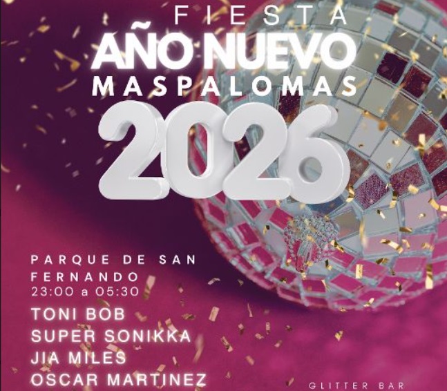 Maspalomas acogerá el evento en el Parque de San Fernando, desde las 23:00 hasta las 05:00 horas, con las actuaciones de Toni Bob, Super Sonikka, Jia Miles y Óscar Martínez. El espacio contará además con animación, photocall, glitter bar y servicio de churros y chocolate.