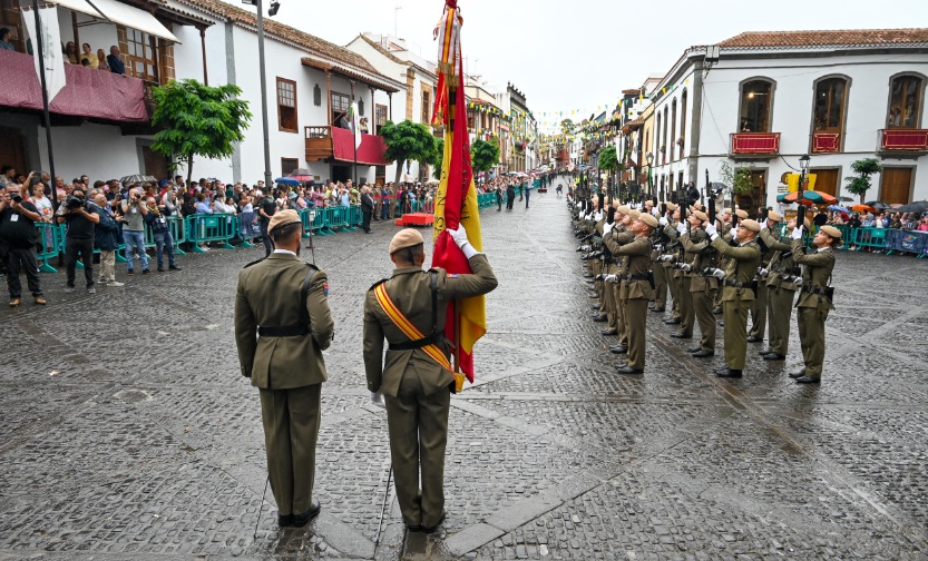 La formación estaba compuesta por una Escuadra de Gastadores del Mando Naval de Canarias, Banda de Guerra nº 1 de la Brigada “Canarias” XVI, Unidad de Música del Mando Aéreo de Canarias, Bandera Nacional perteneciente al Regimiento de Infantería «Canarias» 50 y una Compañía de Honores del citado regimiento, destacando la tradición que sea este regimiento quien rinda honores en este marco de la plaza de la Basílica de Teror.
