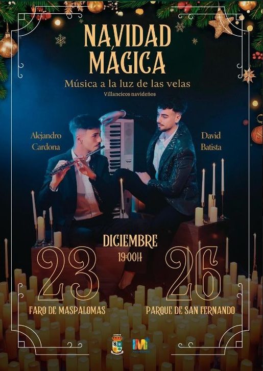 El concierto, con un título tan significativo, se conforma como una de las más señaladas y relevantes citas dentro de la amplia y diversa programación navideña en San Bartolomé de Tirajana. Dos conciertos en dos noches en las que, sin lugar a dudas, vibrará la magia como vibrarán los villancicos, en un acontecimiento, para residentes, visitantes y turistas, que esperan muchos y que converge en dos lugares tan emblemáticos e icónicos como los que se ofrecen en el Faro de Maspalomas y el Parque de San Fernando.