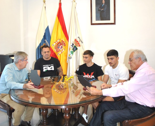 En ese sentido, en nombre del Ayuntamiento y de todo el municipio, el alcalde y el concejal de Deportes felicitaron a Unai Bolaños Cáceres, tras haber obtenido la medalla de plata y subcampeonato de España Grappling, categoría sub 20, menos de 62 kg (Feloda), y, también, a Iker Segura Rodríguez por el bronce y tercero de España en Jiu Jitsu/Grappling U13.