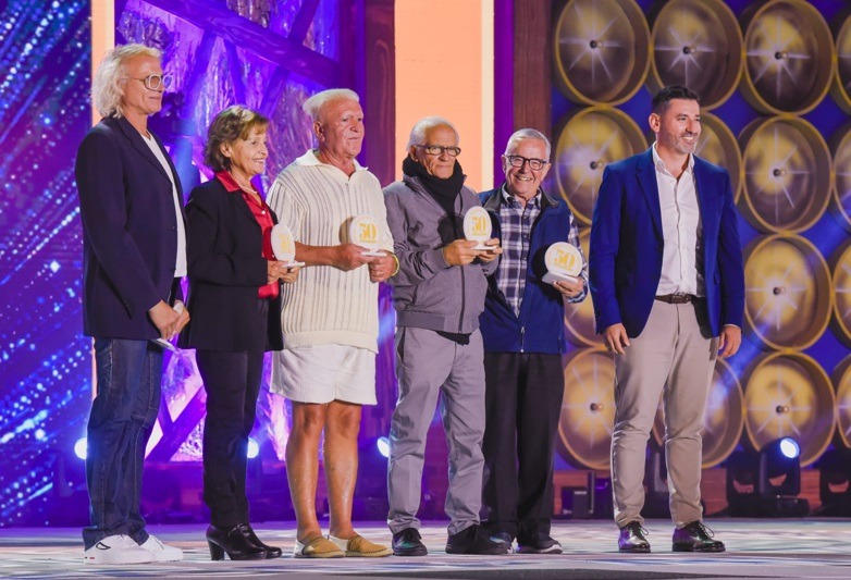 Para celebrar sus cincuenta aniversario, la gala comenzó recordado a cinco personalidades celebres de la historia del Carnaval Internacional de Maspalomas. a las que se les ha entregado un premio honorifico a manos del alcalde accidental Alejandro Marichal.