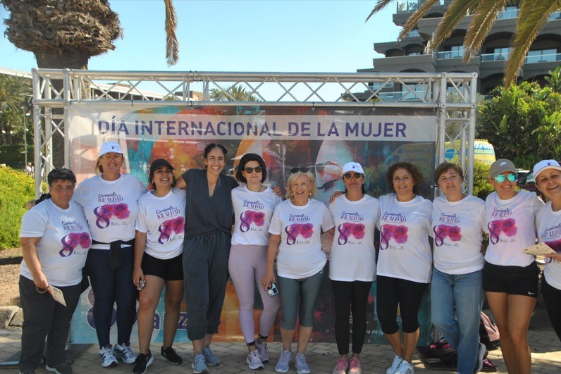 Con motivo del Día Internacional de la Mujer, el Ayuntamiento de San Bartolomé de Tirajana ha celebrado este sábado la tradicional Caminata por la Igualdad María Ángeles Ruano Suárez, desde la Casa Condal hasta el Faro de Maspalomas por toda la orilla de Playa del Inglés.