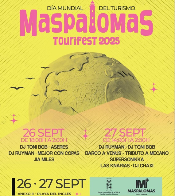 El encuentro se desarrollará el 26 y 27 de septiembre, en el Anexo II de Playa del Inglés, la playa más internacional de Canarias, con entrada gratuita y un ambiente pensado para residentes y visitantes. Bajo el lema mundial de este año, “Turismo y transformación sostenible”, el «Tourifest» une música, sostenibilidad y convivencia ciudadana en un entorno único.
