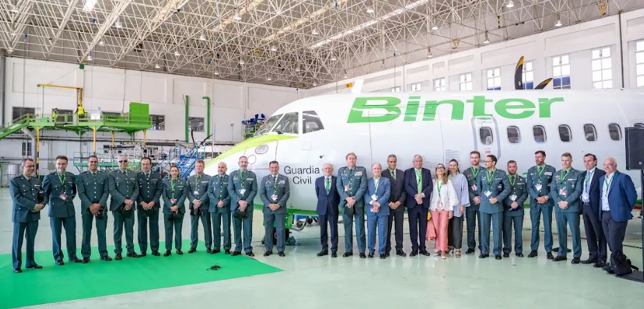 El acto, en el hangar de Binter Technic del Aeropuerto de Gran Canaria, contó con la presencia del presidente de la aerolínea, Rodolfo Núñez, y del general de brigada, jefe de la zona de la Guardia Civil en Canarias, Juan Hernández Mosquera, el delegado del Gobierno en Canarias, Anselmo Pestana, el viceconsejero de Infraestructuras del Gobierno de Canarias, Francisco Gonzalez, el director regional de Enaire, Javier Delgado; y el director del Aeropuerto de Gran Canaria, Julio Peñalver.