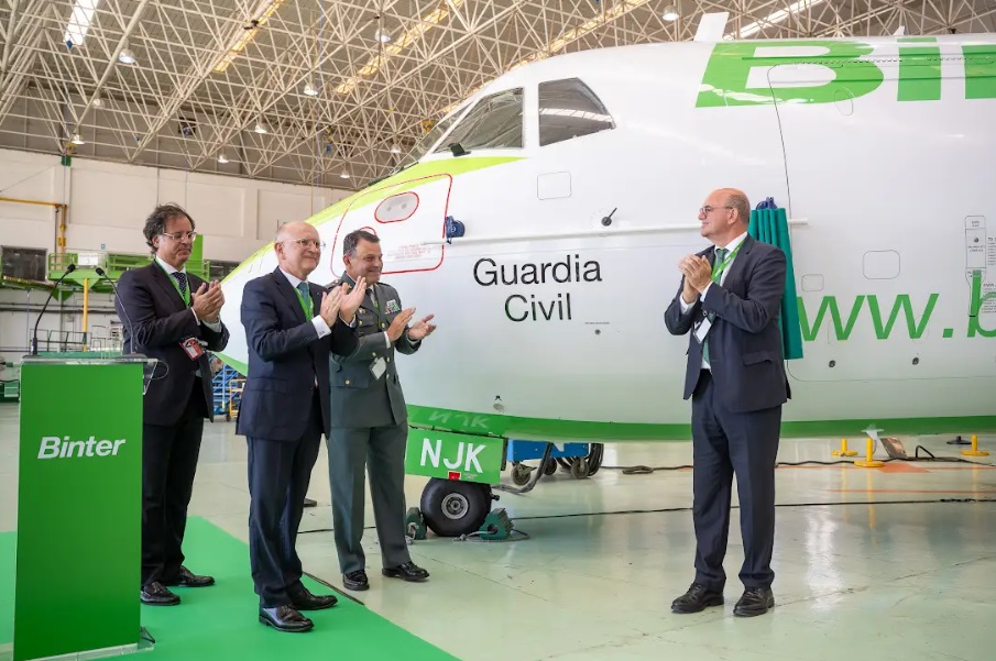 El acto, en el hangar de Binter Technic del Aeropuerto de Gran Canaria, contó con la presencia del presidente de la aerolínea, Rodolfo Núñez, y del general de brigada, jefe de la zona de la Guardia Civil en Canarias, Juan Hernández Mosquera, el delegado del Gobierno en Canarias, Anselmo Pestana, el viceconsejero de Infraestructuras del Gobierno de Canarias, Francisco Gonzalez, el director regional de Enaire, Javier Delgado; y el director del Aeropuerto de Gran Canaria, Julio Peñalver.