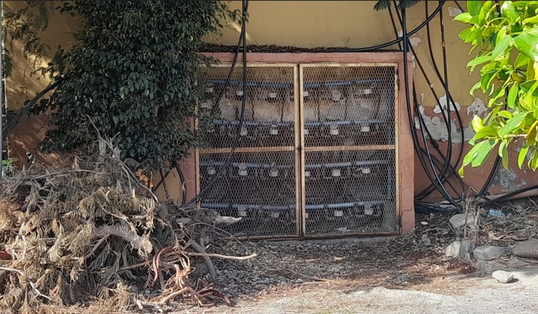 En la parte que da hacia la Avenida Alejandro del Castillo, junto a un pequeño descampado, aunque con casas habitadas, se encuentra un cuadro de hasta 24 contadores, salvo error, de corte tercermundista, con numerosos cables y mangueras, entre ramajes secos, y que llama la atención porque la imagen citada se ofrece a la vista con la misma Avenida. Y aunque sean muy pocos los que transiten a pie por la zona, hemos paseado nosotros sorprendiéndonos, sobre todo, con la imagen de ese cuadro de contadores con aire tercermundista y que agrupa una larga serie de ejemplares de los mismos.