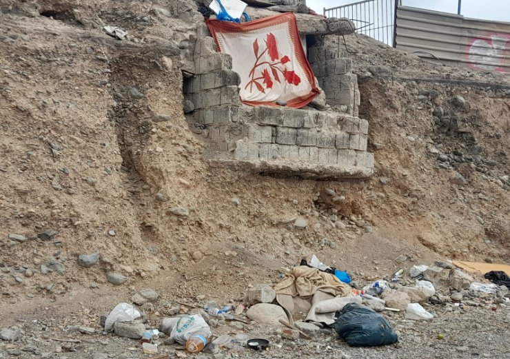 Ahí se encuentra esta vivienda, tras cuy a tela, hay vida humana, con ese basurero, a la altura del suelo, con sus desperdicios y desechos. S escasos doscientos metros del núcleo chabolista que descubrimos hace escasas semanas, entre la arboleda, al otro lado del Mercado Interminable de Maspalomas. Todo ello a unos quinientos metros del Ayuntamiento y a unos trescientos metros del Centro de Salud. Y en línea recta, a la misma playa de Maspalomas, a ojo de buen cubero, a unos dos kilómetros de la playa.