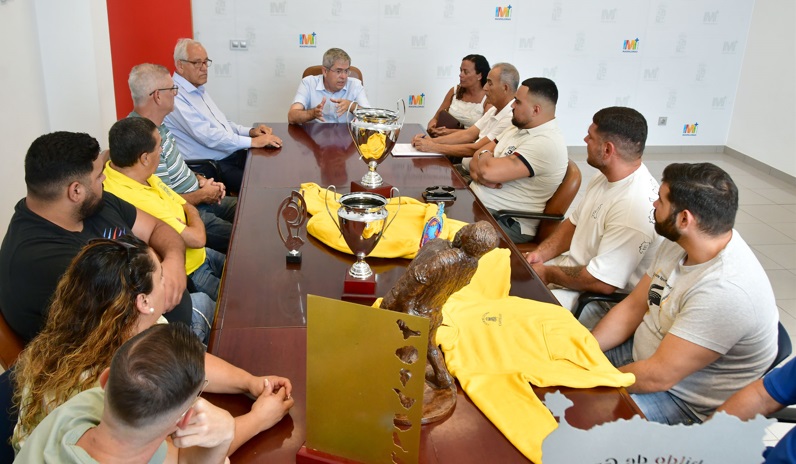 Marco Aurelio Pérez, alcalde de San Bartolomé de Tirajana, Ramón Suárez Ojeda, concejal de Deportes, y Esther Delgado López, concejal delegada de Cultura, han recibido en audiencia al Club de Lucha Castillo del Romeral.