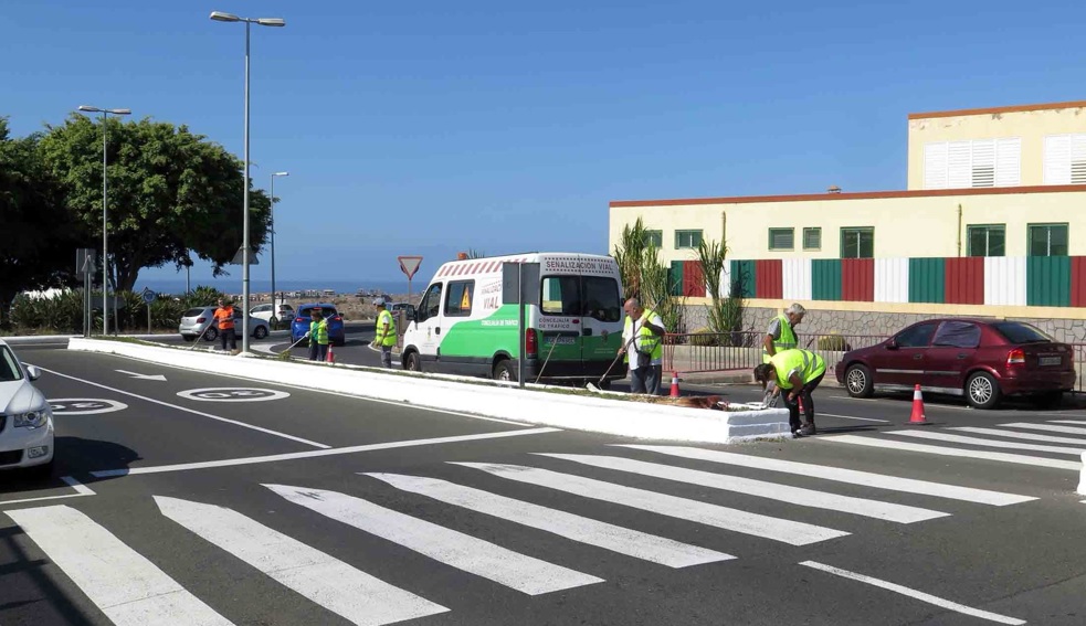 La actuación también ha conllevado la reparación de los bancos y el repintado de la valla protectora de la Avenida del Barranco; la poda y limpieza de las arboledas de las plazas de la Iglesia, del Pilar y de Pepe el Barbero, y el embellecimiento de toda la mediana y las dos rotondas de la Avenida Francisco Vega Monroy que conecta El Tablero y Sonnenland.