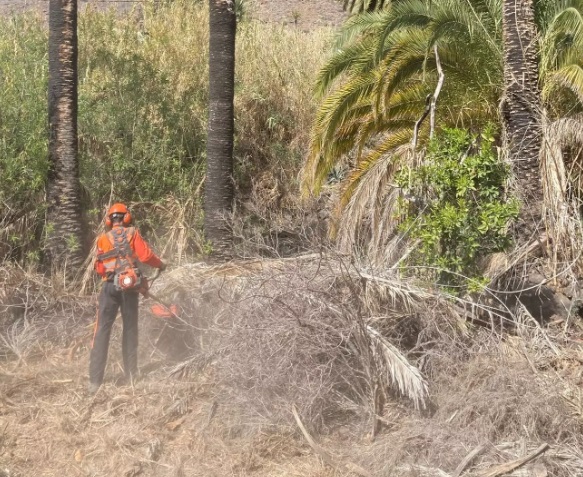 Entre los meses de marzo y mayo de 2022, se actuó en el Palmeral de La Solana en el cauce del barranco de Fataga, perteneciente al municipio de San Bartolomé de Tirajana, con la Unidad Phoenix que forman un capataz y cuatro operarios en labores de poda, desbroce y triturado de hojas de palma y caña. Se realizó la poda de 11 palmeras. Además, se contó con refuerzo durante varios días de unidades Presa y Bravo de la Unidad Operativa contra en la actuación contra la caña, especialmente en aquellos lugares de más difícil acceso.