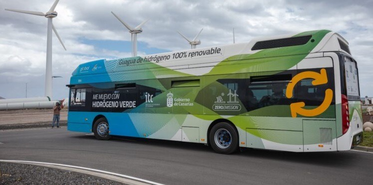 El Instituto Tecnológico de Canarias, vinculado a la Consejería de Ciencia e Innovación del Gobierno autonómico, y el Cabildo de Gran Canaria, a través de la empresa concesionaria de transporte interurbano Global, han puesto en circulación en la ruta sureste grancanaria la primera guagua de pila de combustible de hidrógeno renovable de Canarias